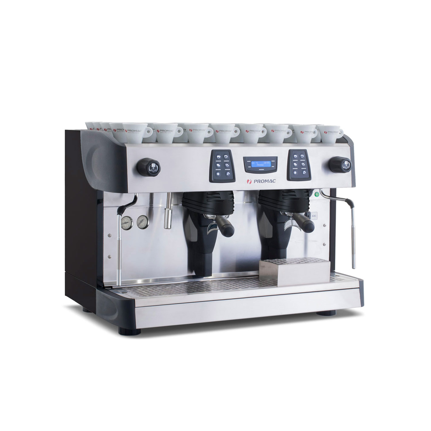 – tre ergonomiskt formade portafilter: ett för en kopp och två för två