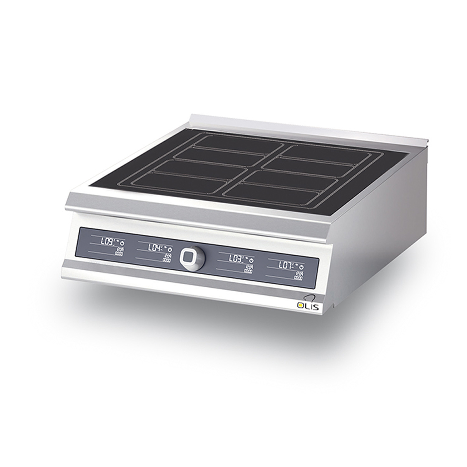 fyra 5 kW hällar. Den obrytbara 6 mm tjocka keramik hällen är delad i