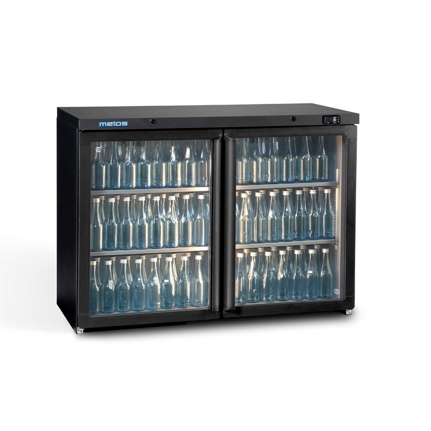 Metos Maxiglass MG3/275G -kylskåp med glasdörr har två justerbara breda