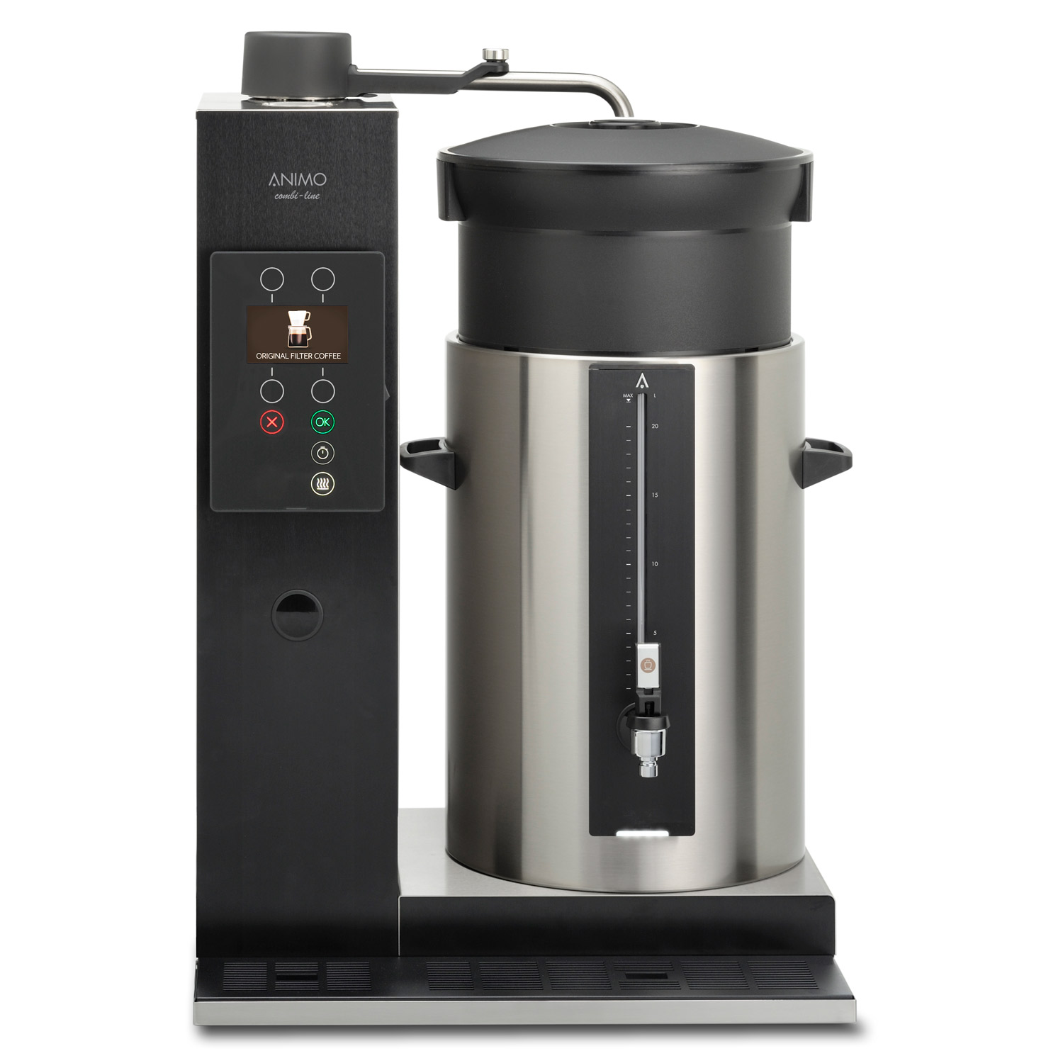 funktionssäker kaffebryggare med en filterenhet och en tjugoliters